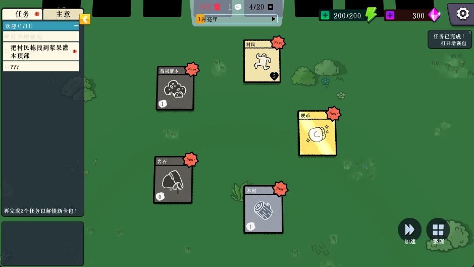 4、当卡牌上方的进度条填满后,就会产出浆果,你可以按照左侧的任务提示来继续推进游戏进程