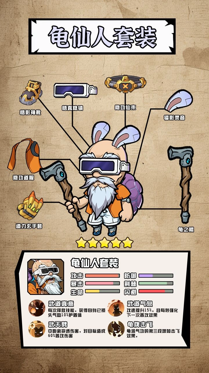 2、龟仙人:释放技能叠加护盾,普攻附带穿透效果,还能击飞敌人,兼具坦度与控制能力
