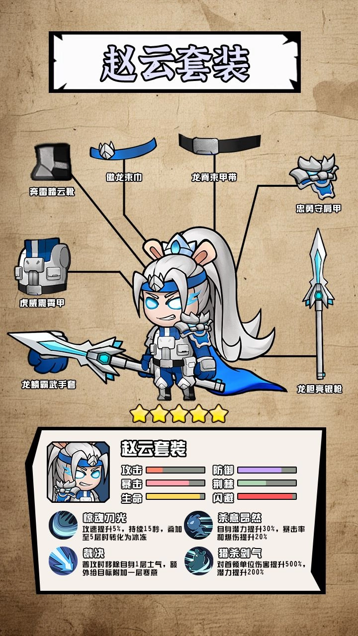 3、赵云:普攻可叠加攻击力并附带冰冻效果,对首领的伤害拉满至500%,堪称BOSS杀手