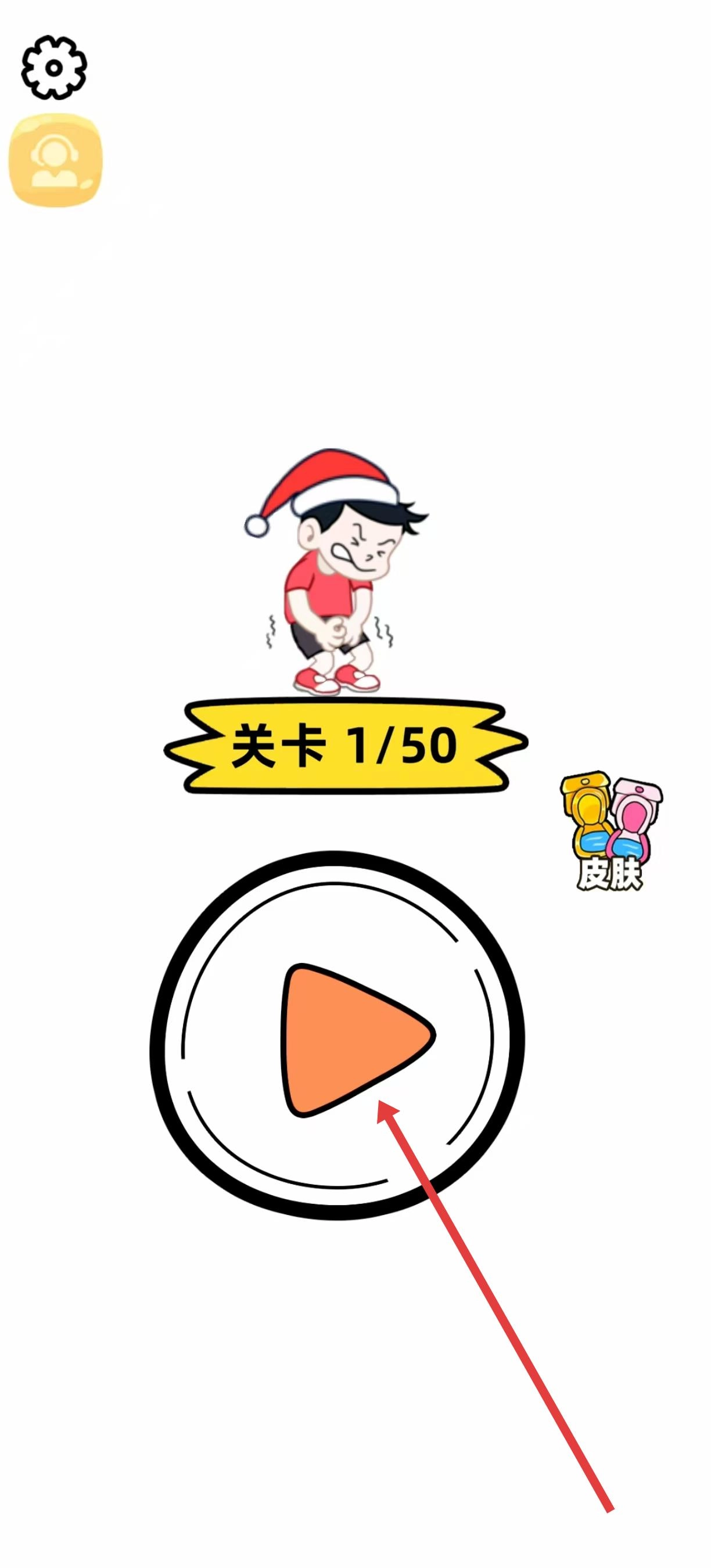 进入佳作界面后,能看到关卡标识和焦急的小人,点击橙色播放按钮,即可开启帮助小人找厕所的挑战,同时要准备规划连线路径。