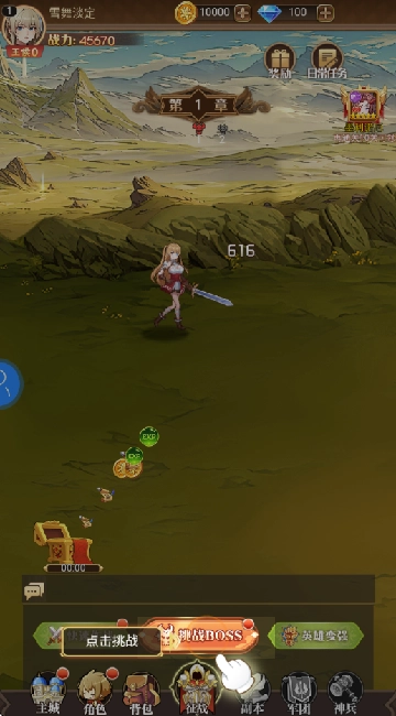 2、开启新手任务后,点击下方的“挑战boss”即可进入第一关。