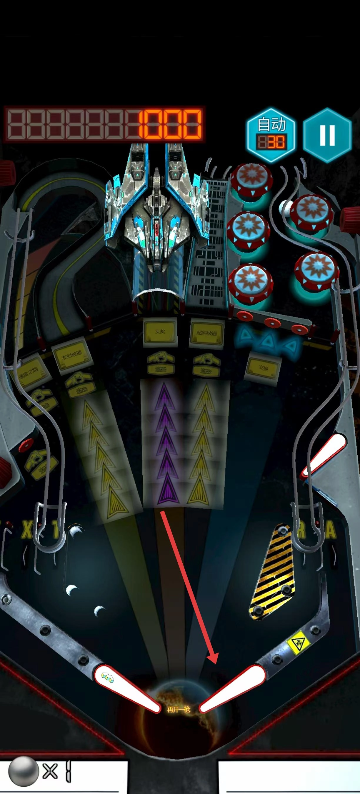 弹珠滚动时,留意轨道的布局和箭头的指引,等弹珠接近底部的再开一枪区域,就按照提示进行操作,这样能帮助弹珠触发更多机关,从而获得分数。