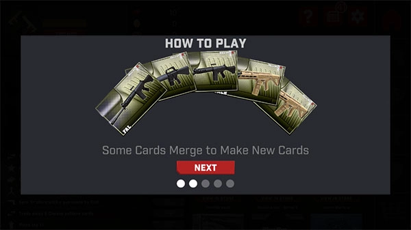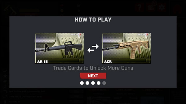 1、游戏开始时会有新手教程引导,通过使用卡片就能解锁对应的目标枪支。