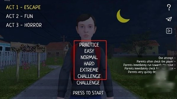 一共设有六个不同的难度挑战,依次为实践、容易、正常、困难、极端和挑战。