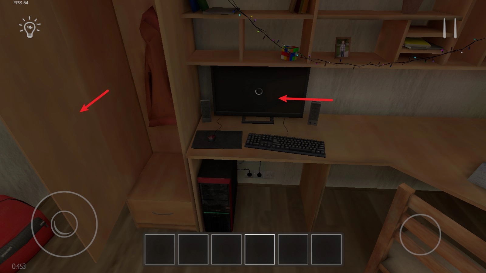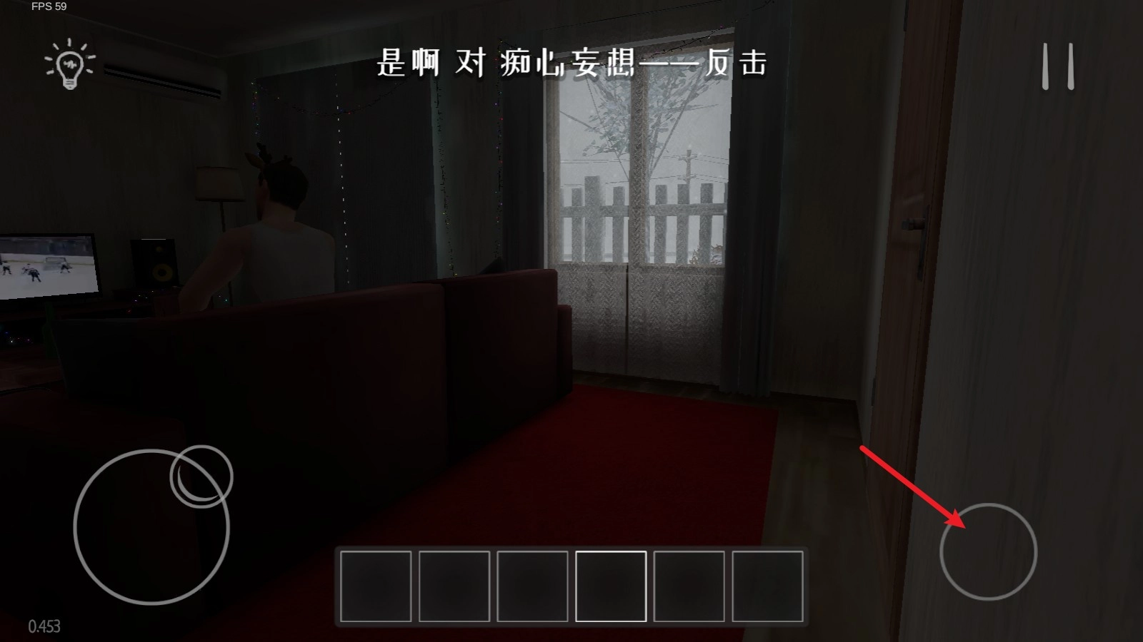 进入游戏后,你会直接出现在自己的房间里。左侧的摇杆用来操控移动方向,右侧的按键则能让你完成起立或下蹲的动作。