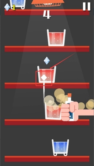 对准冰块所在的位置进行精准敲击,借助反作用力把冰块弹射到对面的空杯子里,连续成功的话还能获得加分奖励。
