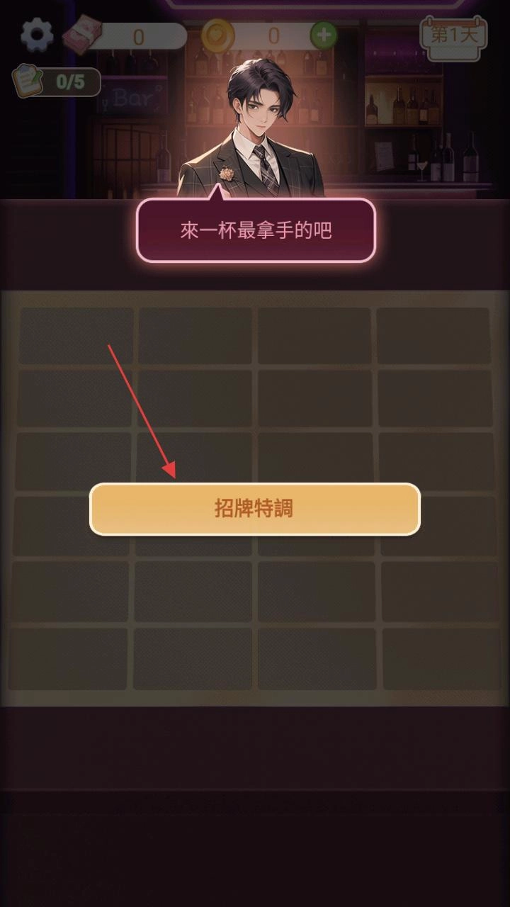 当角色想点一杯调酒师的拿手酒时,点击“招牌特调”选项,为其送上招牌饮品,即可完成该阶段的服务任务,推动剧情继续发展。