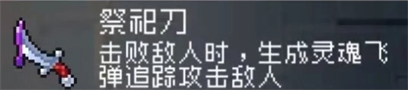 1、祭祀刀:击败敌人后会生成魔法球追踪攻击敌人,对付成群的怪物时表现尚可,更适合用来处理血量不高的目标;群体伤害类型的角色不太需要这件装备,而在面对单体Boss时,它的作用就显得非常有限了。