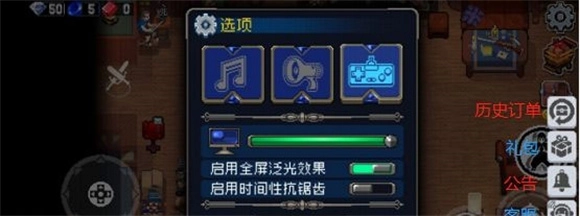 8、点击游戏界面右上角的齿轮图标,进入【设置选项】页面。