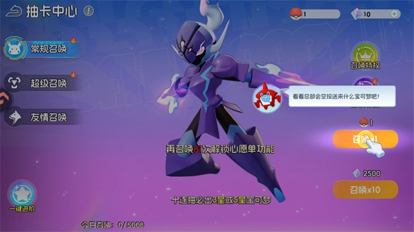 5、如果需要新伙伴可以前往抽卡中心进行获取。