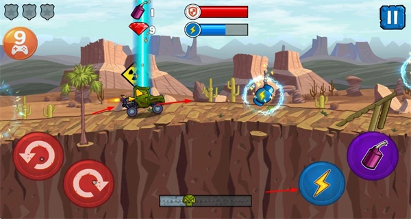 3、对敌方车辆发起攻击,推动关卡进度,赢得胜利并积累更多资源。