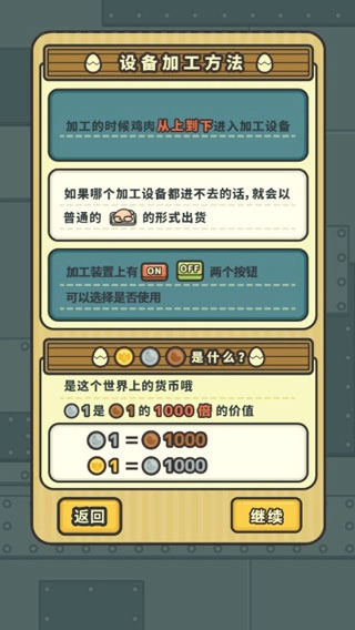 1、启动游戏后点击“OK”按钮开始冒险,恭喜你成为这家养鸡场的新主人!接下来的任务是熟悉整个工厂的基本运作机制,点击“TAP”继续探索。