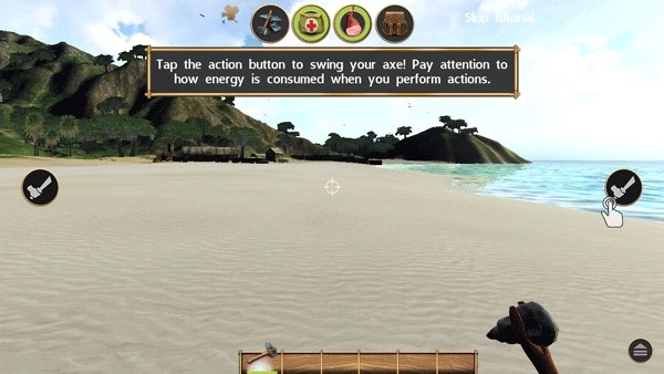 11、点击右侧的按键,即可挥动斧头执行攻击或收集操作