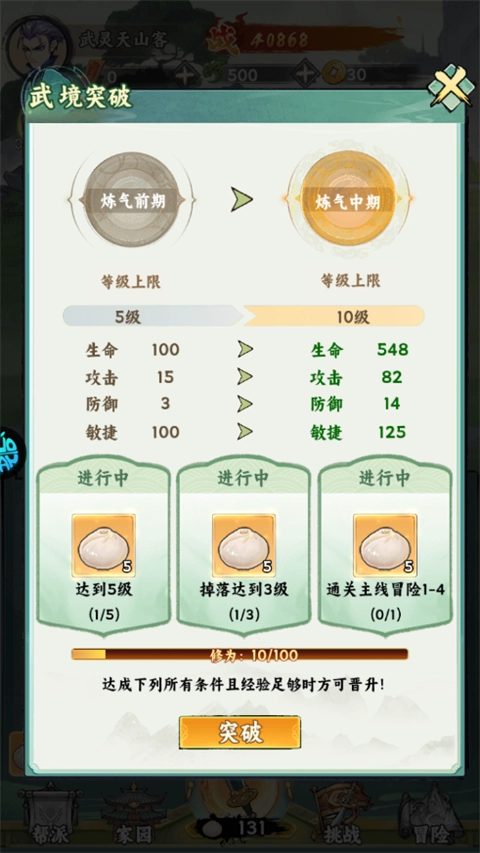 5、我们要是成功突破武境的话还能够提升奖励品质。