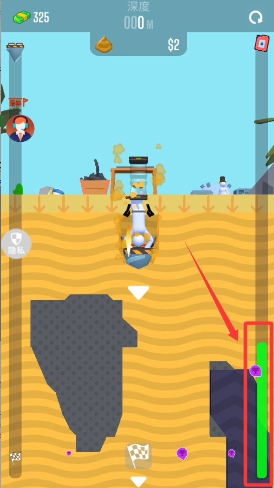界面右侧的绿色进度条会实时呈现当前的油量储备情况,在钻探作业过程中油量会持续减少,当油量处于较低水平时,进度条会切换为醒目的红色警告状态。