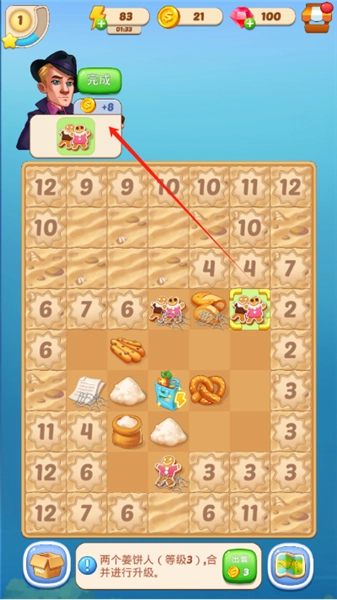 2.将两个相同物体拖到一起,合成更高级的物品。