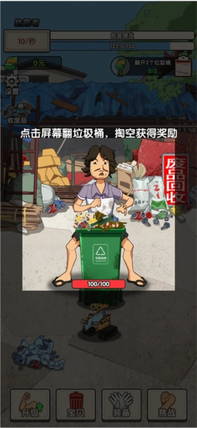 1. 进入游戏后,点击场景里的垃圾桶开展翻找。把垃圾桶掏空后,能随机得到金币或者道具奖励(该操作会消耗体力)。