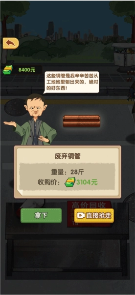 6.要是对废品有兴趣,可以选择支付代价【拿下】或者强行【抢走】;要是没兴趣,点击左上角返回,去寻找其他目标。