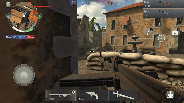4、当遭遇敌人时,先将枪的准心对准敌人,随后点击右侧空白区域就能完成射击。