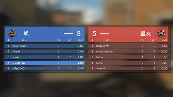 6、最后,在规定时间内尽可能击杀更多敌人吧。游戏界面上方会显示实时比分,最终比分更高的一方将赢得游戏胜利。