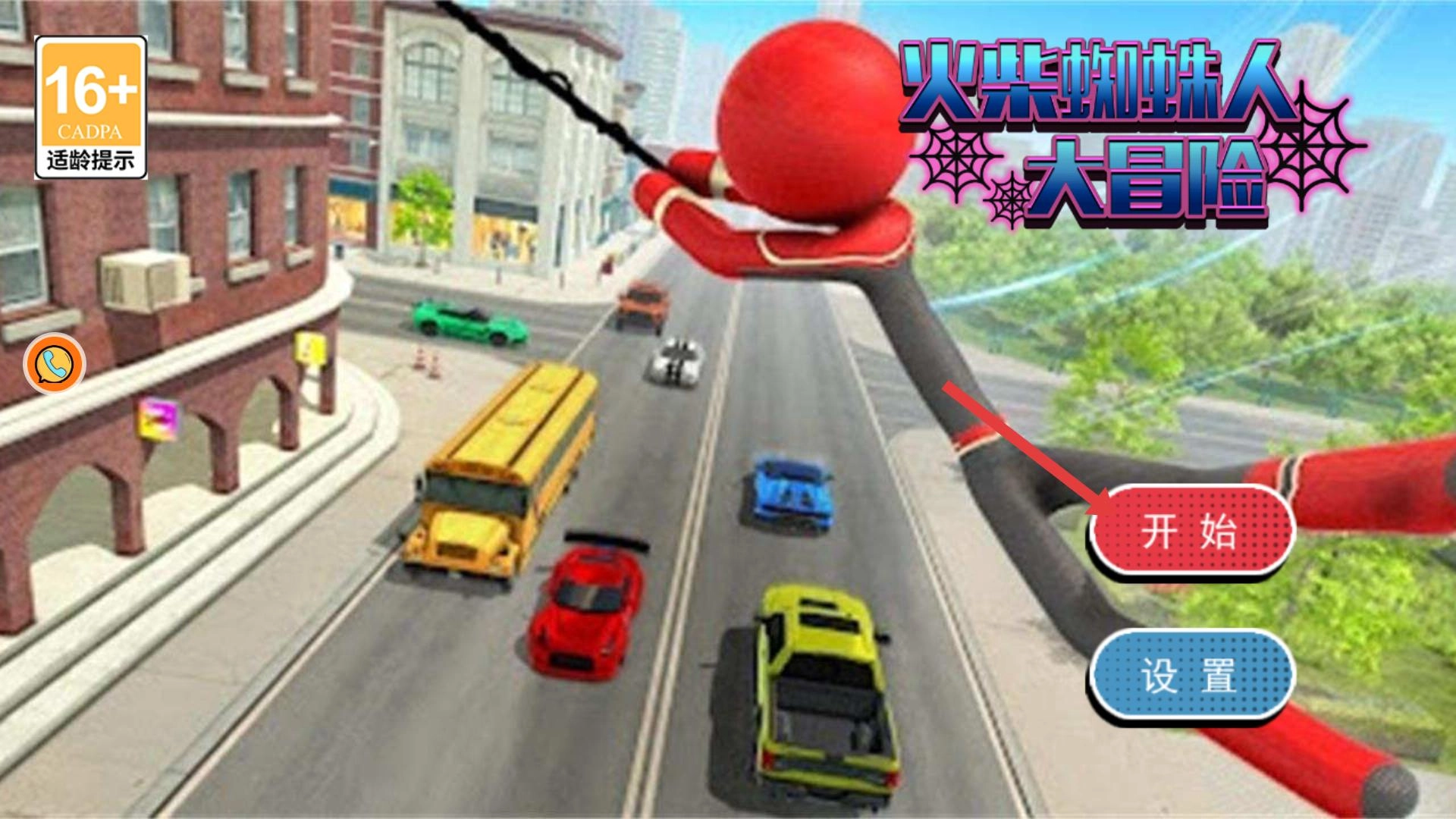 点击“开始”按钮,开启火柴蜘蛛人的冒险之旅。在城市的街道间操控角色,借助蛛丝自由穿梭,逐步熟悉基础的移动操作。