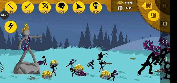 这样我们就能迅速获取足量的矿石,以召唤更多具备攻击性的火柴人。