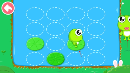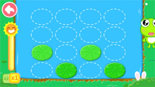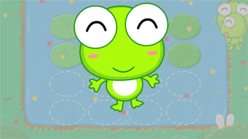 这时候小青蛙得按顺序点击那些小圈圈,让荷叶一片片显现出来,这样它才能回到妈妈的怀抱里。