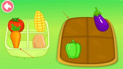 你会看到左边有个小篮子,把里面的蔬菜放到对应的正确位置,就能顺利通关了。