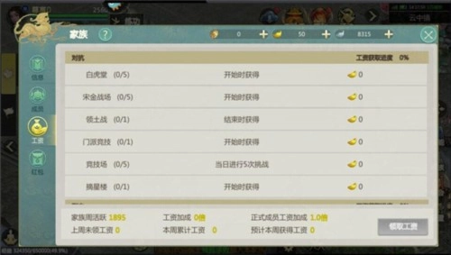 3、参与副本和家族任务后可以在工资处领取元宝奖励