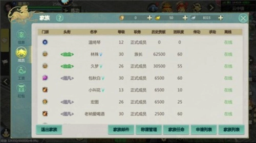 6、要是加入的家族不够活跃,你可以进入成员界面,点击退出家族按钮就能退出了。