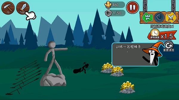 进入游戏前得先熟悉游戏规则,还得解锁矿工和棍棒手这两种火柴人战士。