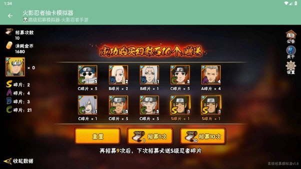 5、专为火影忍者粉丝打造的忍者招募模拟器,操作简便,能满足玩家获得心仪忍者的愿望。