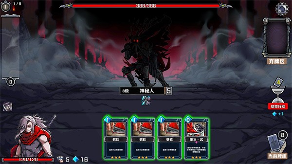 4个不同随机规则的关卡,每个关卡会根据各自的规则随机生成出一系列的事件,在事件中可以有很多获得新卡牌的机会,你需要谨慎的思考并做出抉择(选择你需要的卡牌,遗忘过时的卡牌),最终能否击败敌人与你的牌库息息相关。