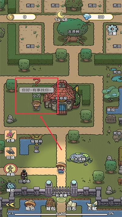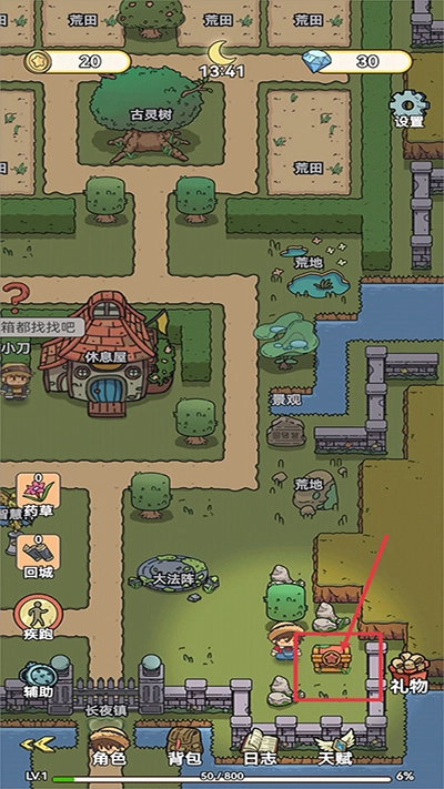 开局先去拿艾族长上方的宝箱,里面装有1000金币、30钻石之类的物品,后续会派上用场。之后,再和艾族长对话接取任务。这些任务主要是引导大家熟悉基本操作流程,要是艾人的老玩家可以直接快速跳过。