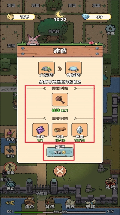 而解锁传送阵需要科技和相应材料才可以解锁。