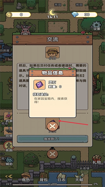 接着按照获取途径的提示,在自己的家园里找到宝箱,点击它就能打开。不是每个宝箱里都一定有灵石,如果打开的宝箱没有灵石,还可以继续寻找其他宝箱来开启。