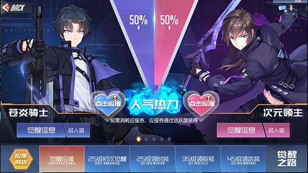 神选者大人在觉醒之路上能为自己心仪的职业加油助力,那里会实时展示票数的竞争情况。