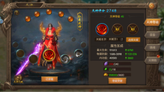 3、天神装备界面支持穿戴天神套装与查看天神技能,高阶天神套装可激活更强大的技能。该装备通过青龙装备熔铸获取,具体熔铸规则将在下文说明。点击人物光柱上的技能图标可强化技能,解锁需满足套装激活条件。