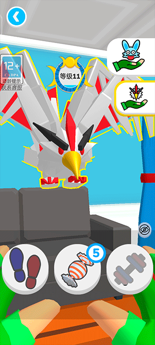 在萌宠养成玩法里,你既可以用糖果投喂来让它升级——每喂一颗糖果就能直接提升一级(糖果能在地图随机地点刷新获取,也能通过击败对手得到),也能选择锻炼升级;要是想出门探险的话,点击最左边的那个按钮就行。