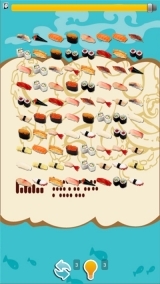 点击两个图案相同的寿司,若它们之间的连线不超过3条,就能将其消除;在规定时间内消除足够多的寿司,即可通过关卡。
