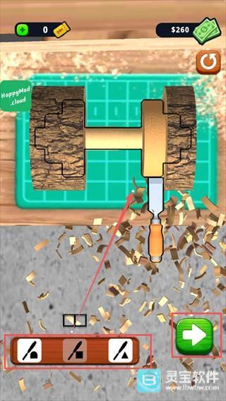 3、多样的关卡挑战,每一关都设有不同的目标,你也能尽情发挥创意,体验削木头的乐趣。