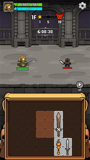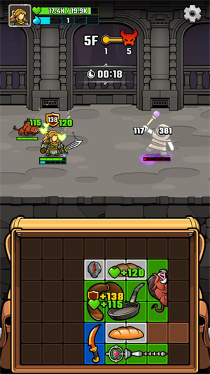 3、把所有物品都放进背包后,点击楼层按钮就能开启战斗,角色会自动进行战斗。