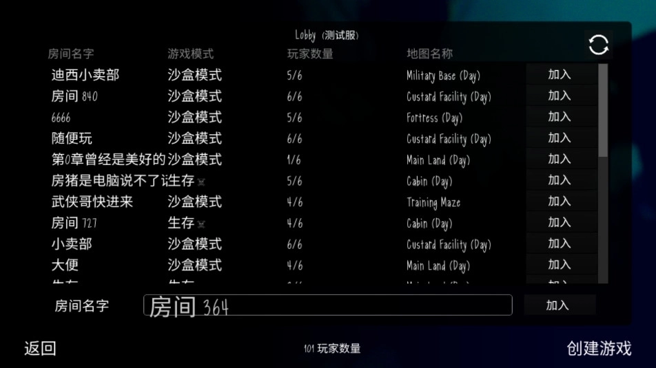 5、多人联机模式则是可以自创房间邀请其他玩家联机,或是加入到现有的游戏房间内,分别扮演恐怖的天天宝宝屠杀者,或是对抗着生存方,竞技性拉满,趣味升级,难度更高。