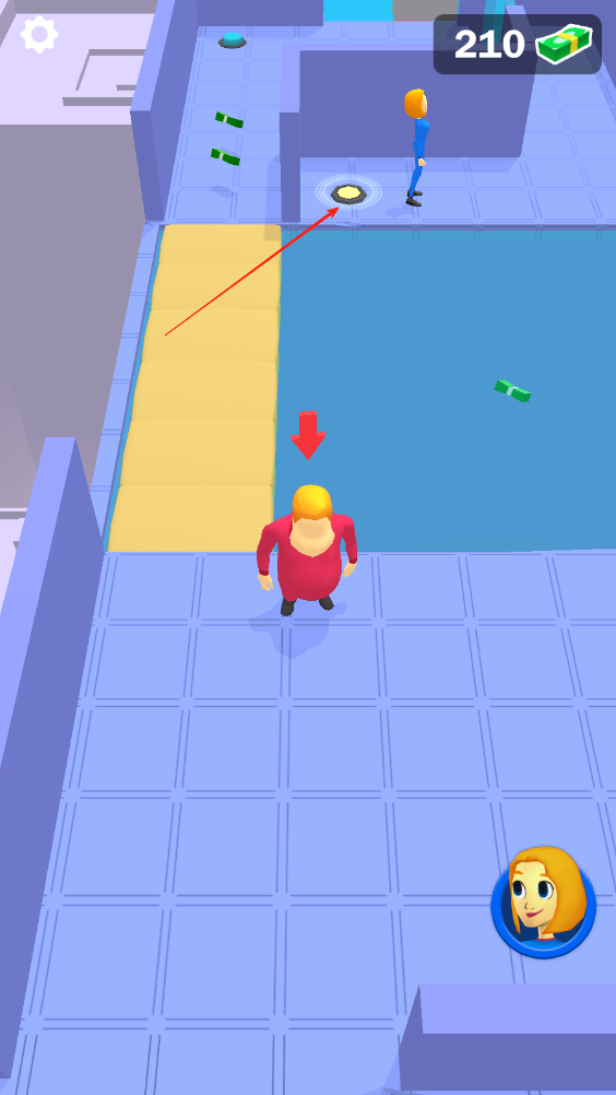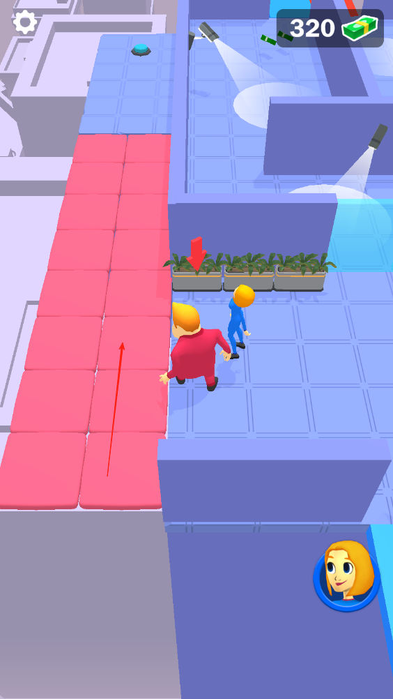 3、红色地板仅限男孩行走,男孩需走到尽头踩下按钮,开启第一扇门,女孩则要避开摄像头的追踪悄悄进入。