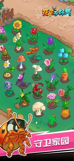 合成玩法:玩家通过合成花朵,能够解锁更强大的花卉品种,从而提升自身的防御能力。