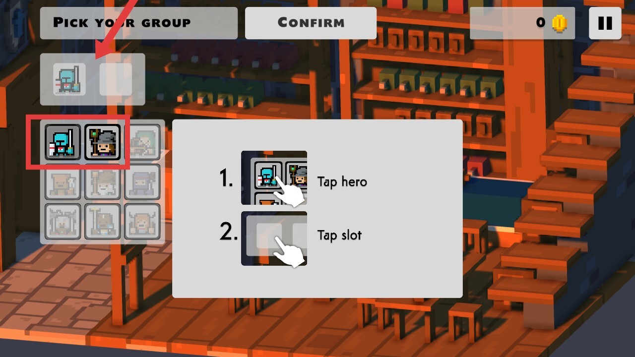 2、进入【PICK-YOUR-GROUP】环节后,根据指引点击操作,挑选自己喜欢的英雄角色,来组建一支冒险队伍。