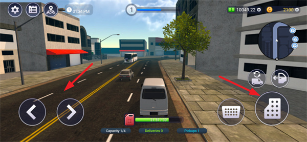 2、接着驾驶卡车行进,左边的两个按键用来操控车辆左右移动,右边的按键则分别对应刹车和油门。