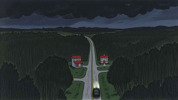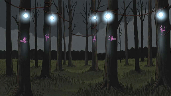 3. 独特的氛围充满了高度的紧张感。黑白影像、没有面部特征的人物形象、雨夜中的小镇这些视觉元素,再搭配上怪异的声音效果,一同构建出了一种让人感到不安的环境氛围。