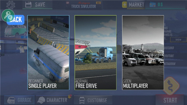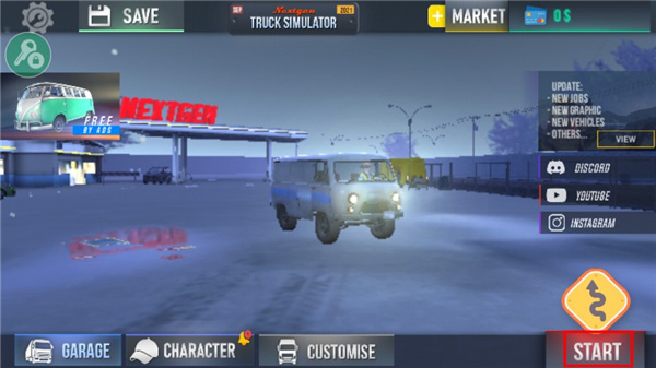 1、打开NEXTgen卡车模拟器游戏,进入游戏界面后,点击右下角的“start”按钮即可启动游戏。