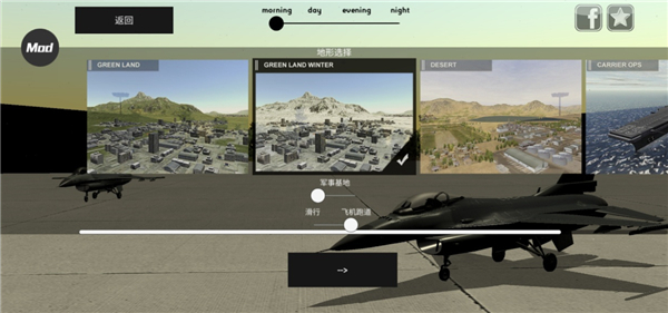 2、你可以选择一天中的某段时间、地形以及跑道;
